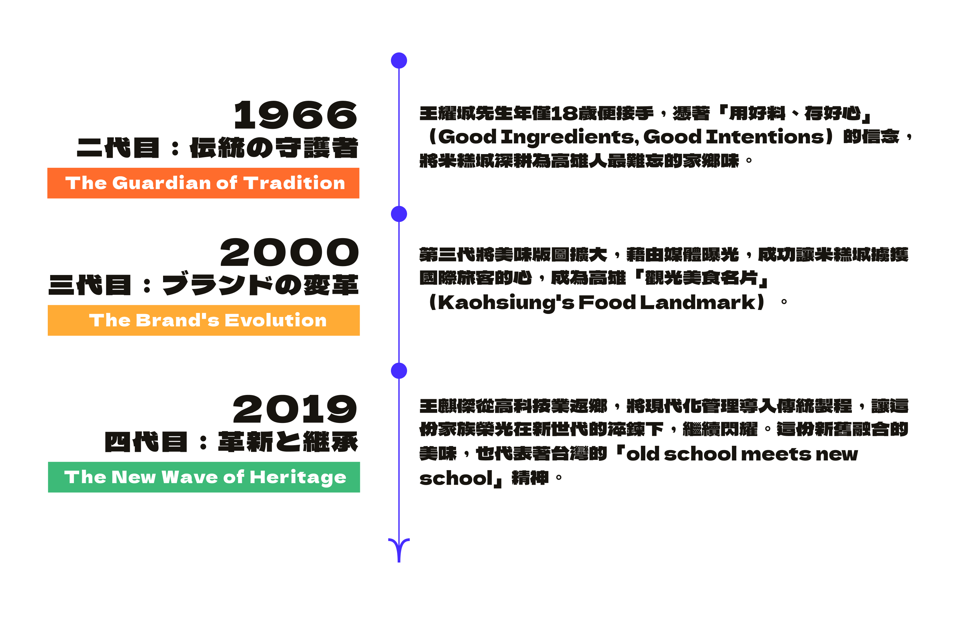 傳承的部分,米糕城與鹽埕在地一起度過八十年,希望在傳遞品牌的同時,也加深大眾對鹽埕在地的印象。讓米糕城的城,不只是創辦人王耀城的城,也是鹽埕的埕。